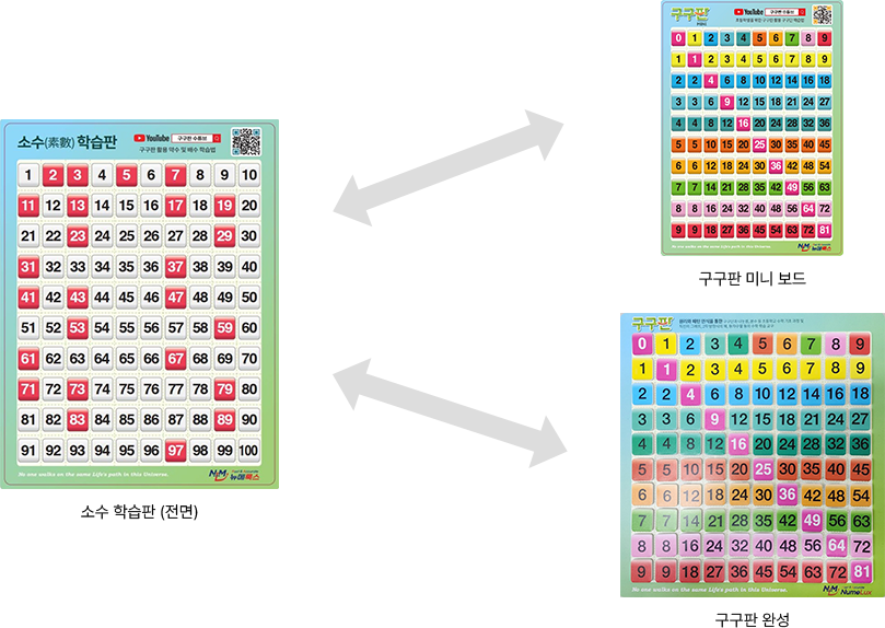 소수 학습판 (전면) + 이차방정식 숫자 놀이 학습판 (후면)