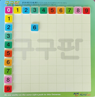 <구구판>을 활용한 놀이 형태 학습을 통해 구구판 위에 놓여지는 숫자들에 익숙해진 이후 구구판 미니 보드 또는 완성된 구구판의 숫자들과 비교해 보도록 함으로써